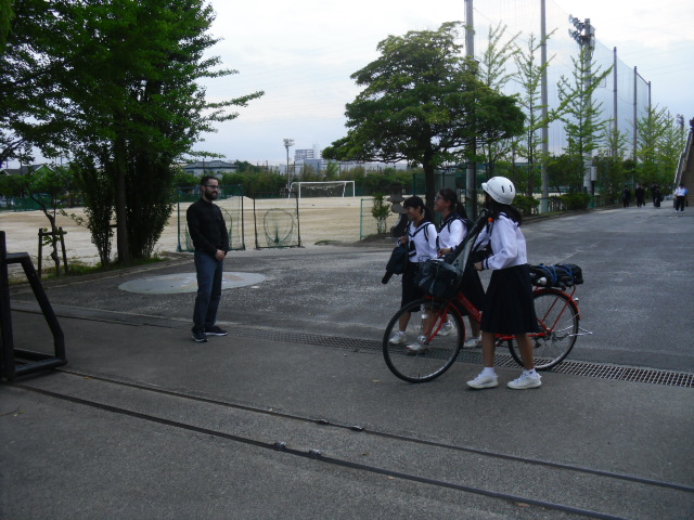 本日の下校の様子です。今日はALTの先生も下校の生徒に声をかけてくれ、生徒からの「see you」の声が響いていました。