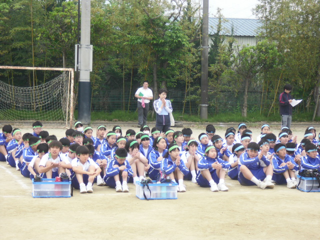 本日より学年ごとの体育祭練習が始まります。1,2校時に1年生の学年練習がありました。