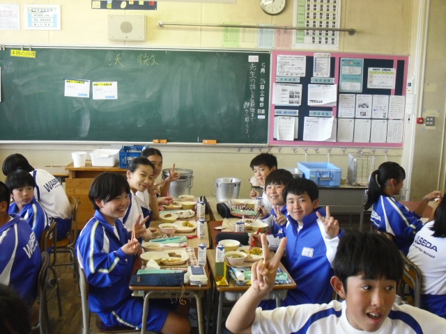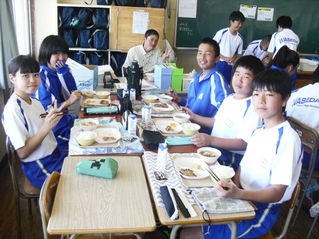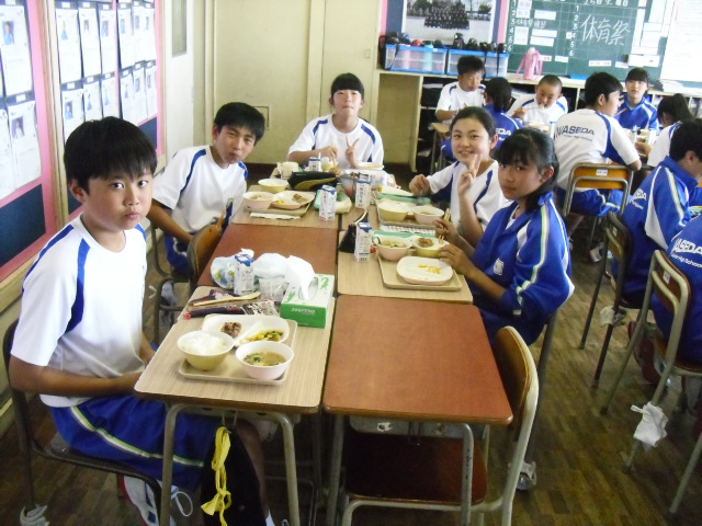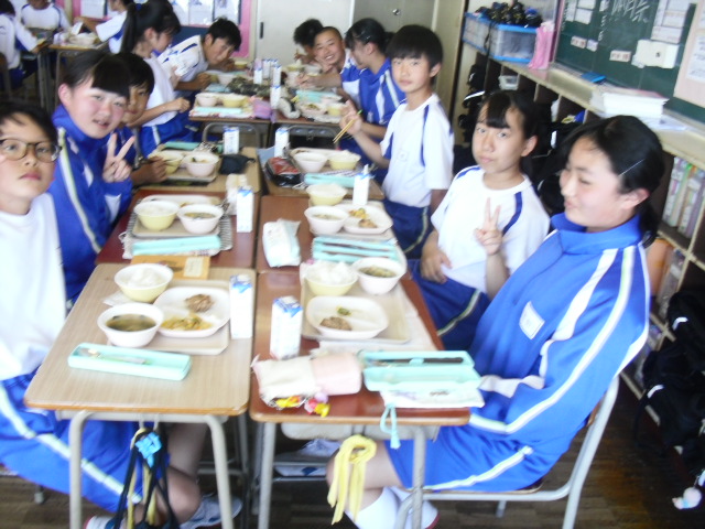 本日の給食の様子です。暑さに関係なく元気に食べています。