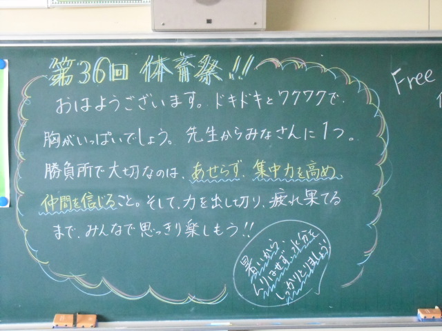 晴天に恵まれました。これから第36回体育祭が行われます。保護者の皆様ご来校お待ちしております。