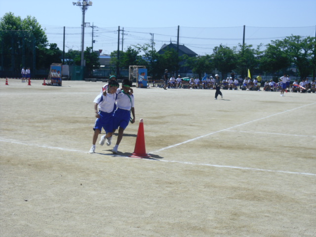 二人三脚リレーです。