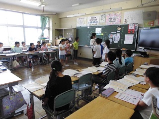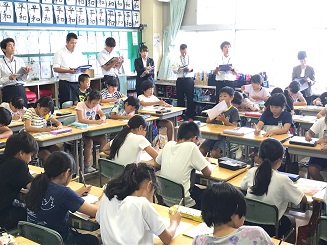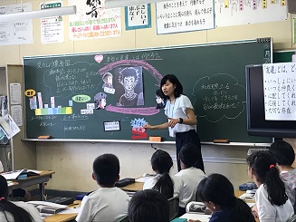 教職員の一年生(以下:初任者)は一年間研修を受けることになっています。 今日はその初任者の研修で、本校で道徳の勉強を行いました。 4・5年生での道徳の授業を、初任者の先生が見学しました。