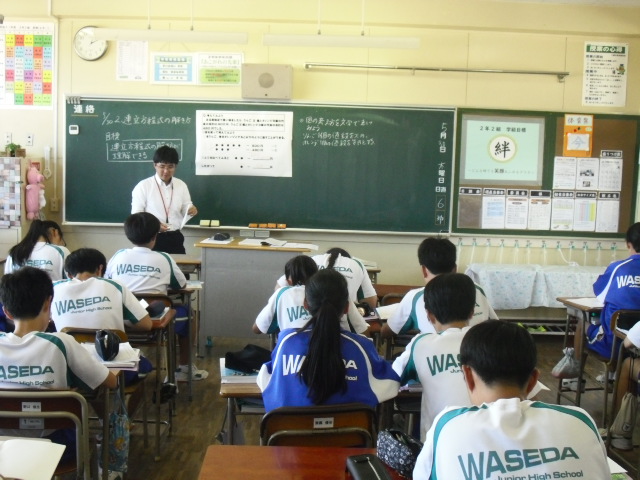 教育実習生の3週間の実習期間も残り2日になりました。本日5校時、数学の研究授業が行われました。