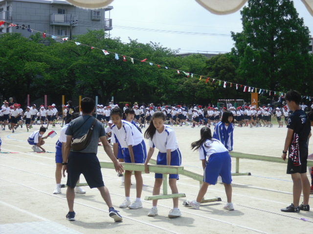 本日、小学校の運動会が行われています。本校からは、たくさんの生徒が運動会ボランティアとして参加しています。