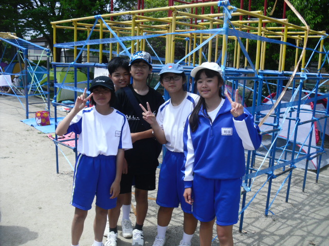 他の中学校のボランティアの生徒とも協力しています。