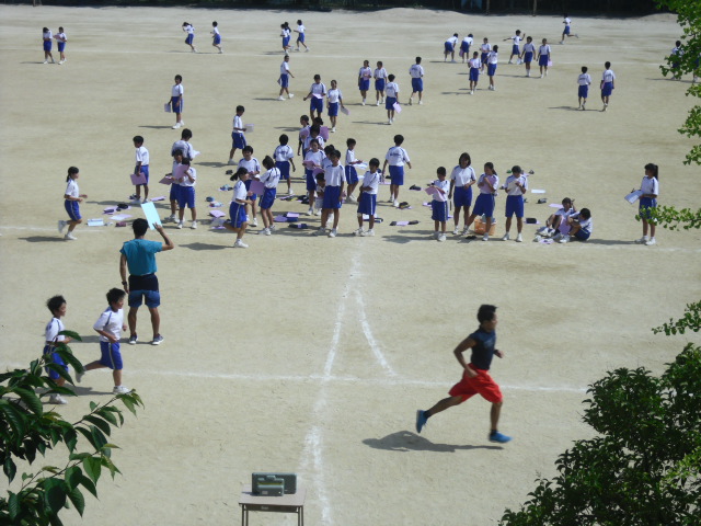 本日5校時体育です。みんな元気に長距離走です。先生も一緒に走っています。