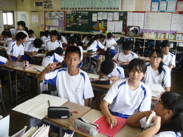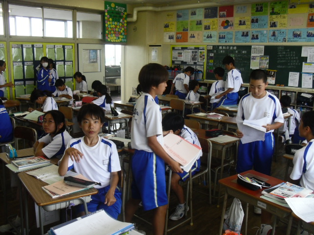 本日、雨でした。外で走り回ることができません。1年生は教室で過ごしていました。