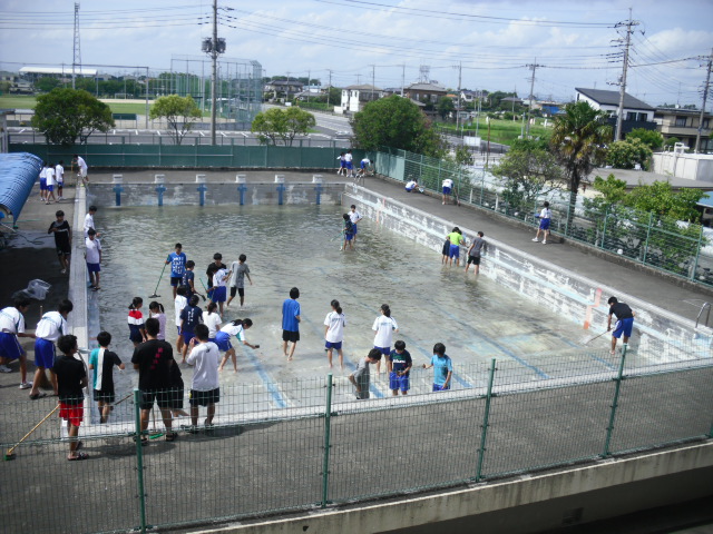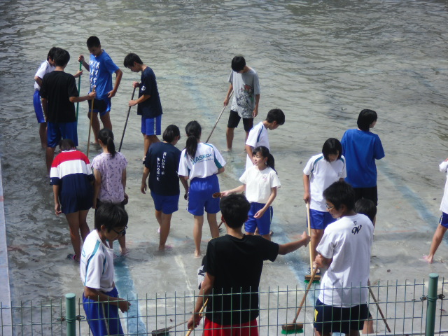 プールの水を抜き、本日プール清掃を行いました。プールの授業が楽しみです。