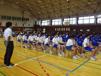 24日(月)5校時、体育館において、3年生は修学旅行に向けた保護者会を開催しました。しおりを使って、行動やルールの確認など、生徒たちが主体となって説明しました。一日、悪天候でしたが、たくさんの保護者の皆さんに参加していただきました。ありがとうございました。