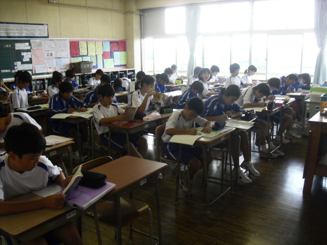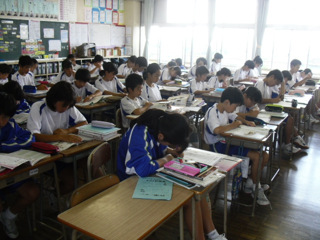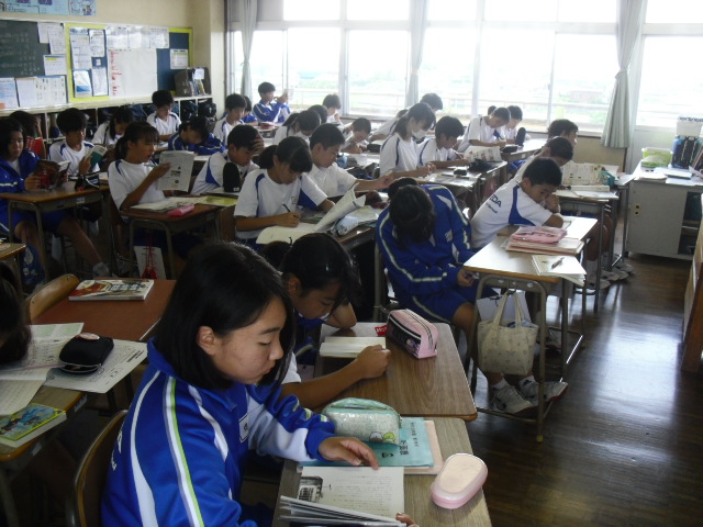 本日の朝読書の様子です。明日は期末テストですので、勉強している生徒もいました。