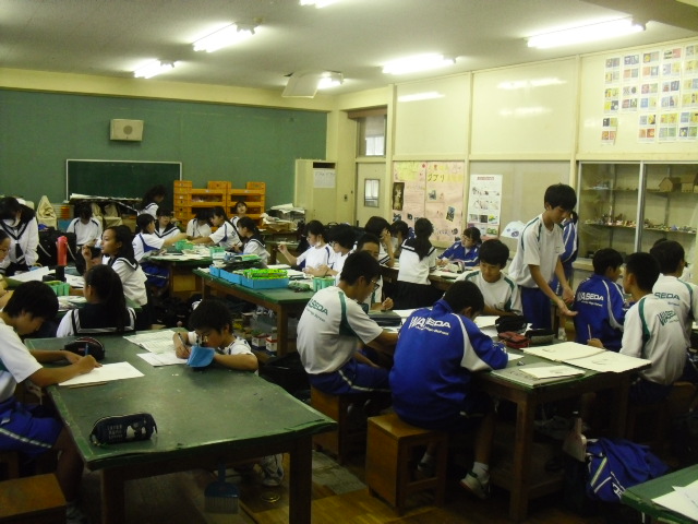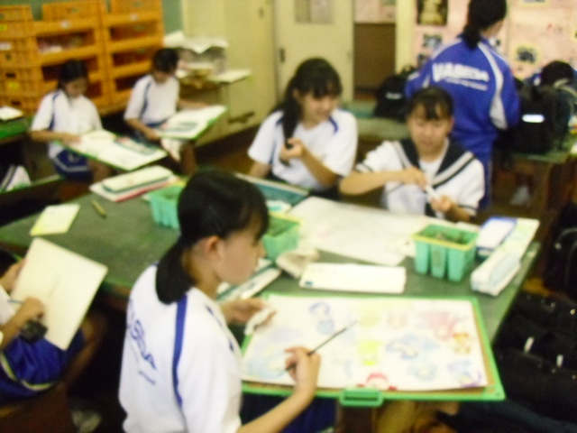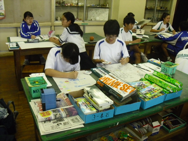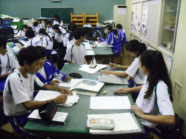 放課後、美術室では欠席等で作品が未完成の生徒のために補習授業が行われていました。