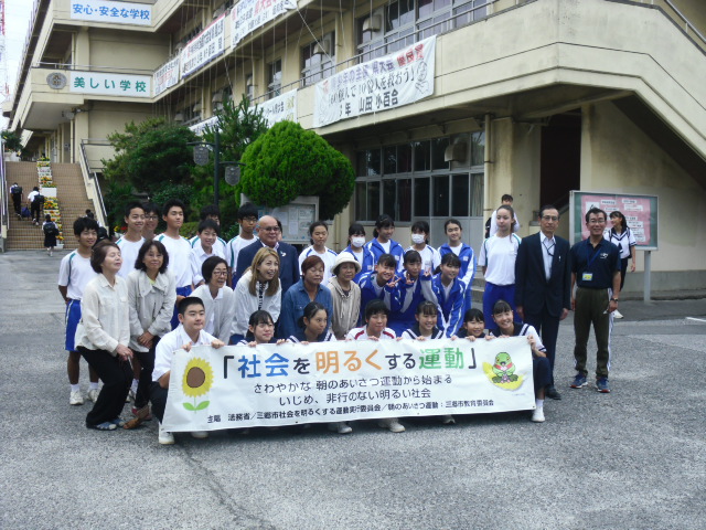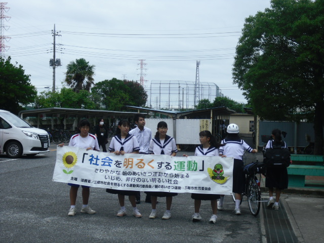 本日朝、「社会を明るくする運動」の一環としてたくさんの方々にご来校いただき、「あいさつ運動」を行いました。
