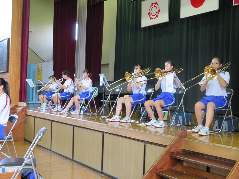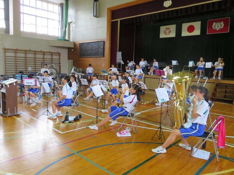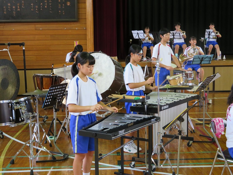 吹奏楽部は大会に向けて、後谷小学校の体育館をお借りして練習を続けています。