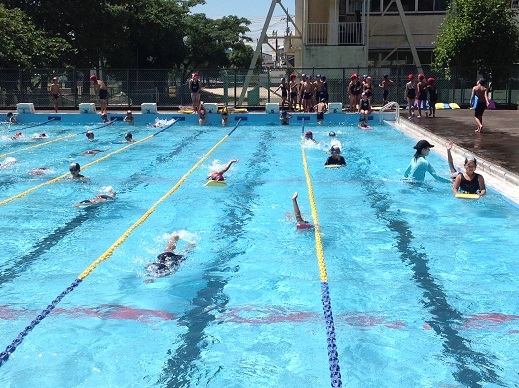 真夏日となりました。 ここ少し前の涼しい日から一変し、歩くだけで汗をかく暑い天気になりました。 学校では「水泳教室」「算数教室」「英語教室」が開催され、さらにブラスバンドやバトンダンス部が発表に向けて練習を行っています。 みんな元気いっぱいですね。 体調に気を付けつつも、夏を思いっ切り楽しみましょう!
