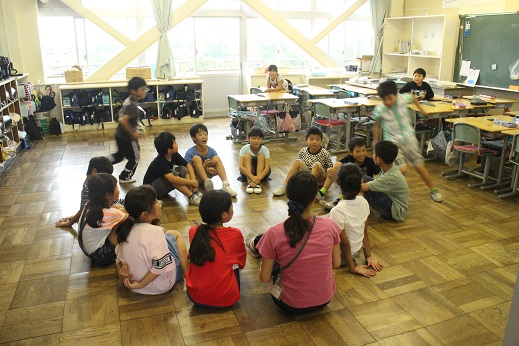 雨の日では外で遊ぶことができません。 児童たちは教室や図書館で楽しく過ごしています。