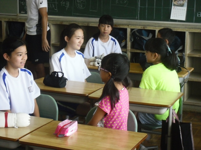 夏休み中に近隣の小学校へ学習支援ボランティアにたくさんの生徒が参加しています。