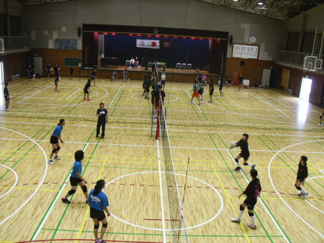 本日、体育館では男女バレーボール部の練習試合が行われていました。