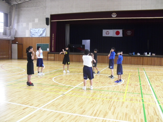 体育館では、男子バレーボール部と女子バスケットボール部です。