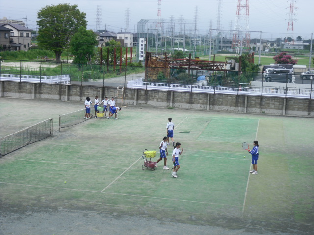 テニスコートでは、女子硬式テニス部が活動していました。