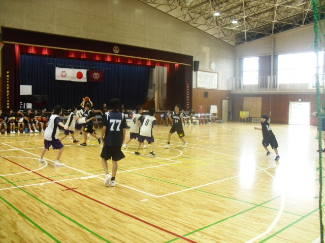 女子バスケット部が練習試合、男女バレーボール部が練習。写真を撮りにいったとき、男女卓球部は終わってしまいました。