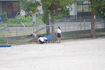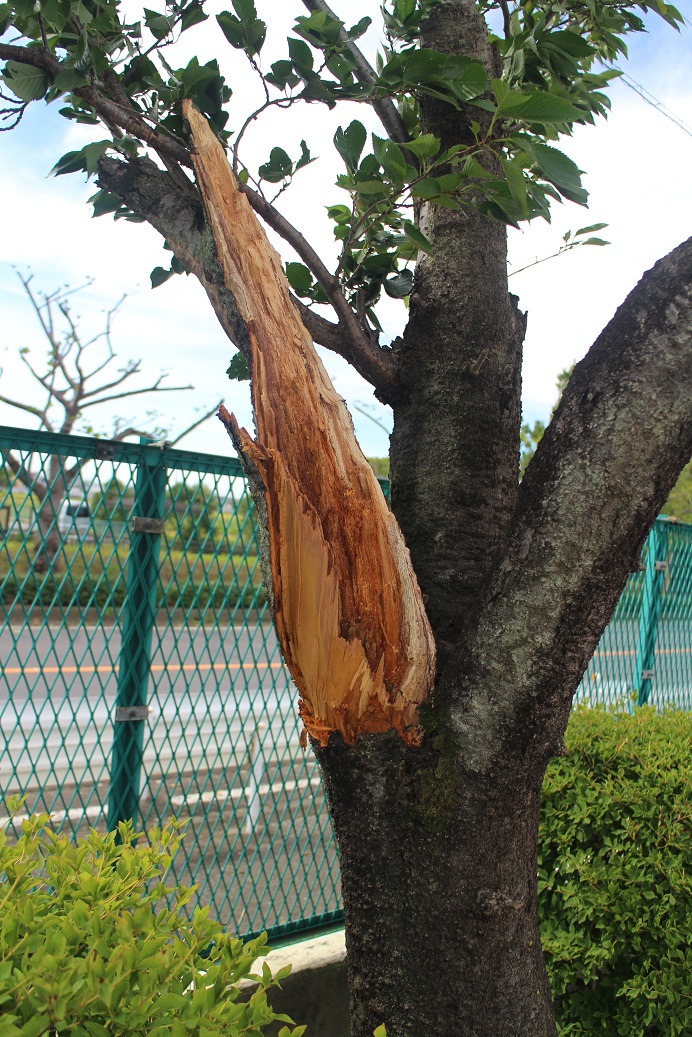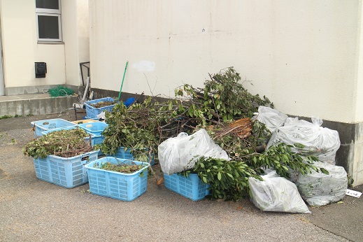 いくつもの観測史上初を記録した巨大な台風でした。 夜半に降りつけた風と雨で、翌朝の彦郷小学校にも様々なトラブルが発生しました。 たとえばじょうろが吹き飛んでいたり、雨漏りがあったりしました。