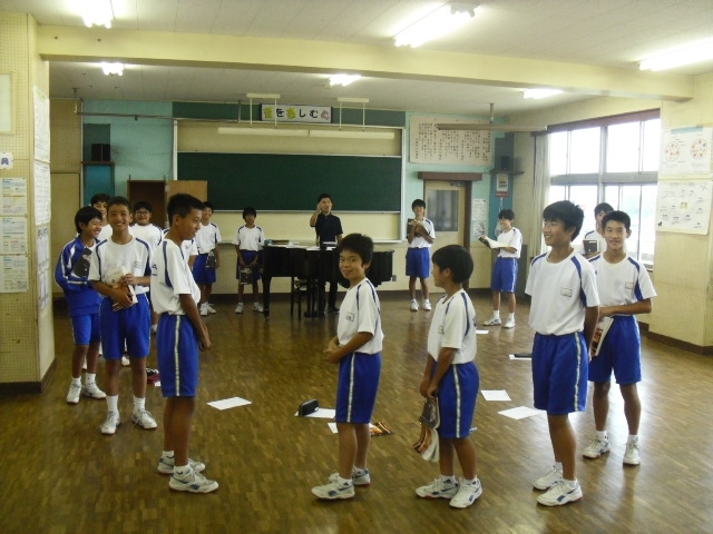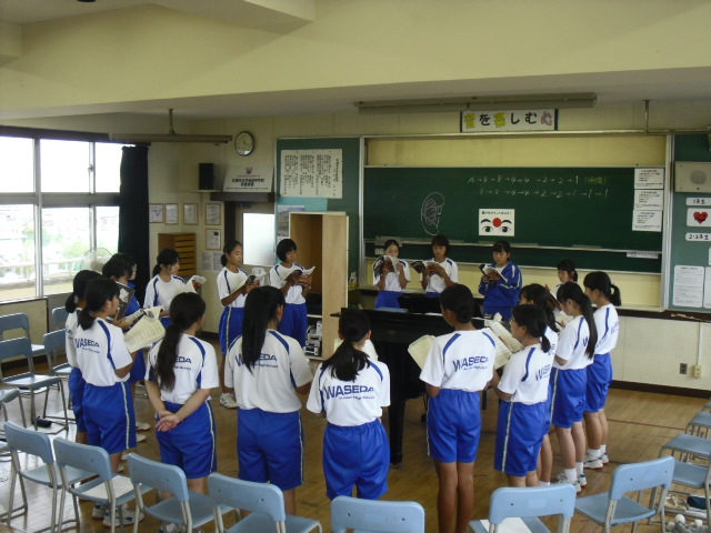音楽です。合唱練習です。バスのパートを先生が指導している間、その他のパートは自分たちでしっかりと練習していました。さすがです。