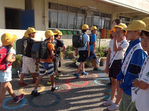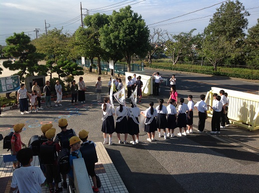 今朝はあいさつ運動がありました。 本校児童以外にもPTAや彦糸中学校のお兄さんお姉さんが来校され、