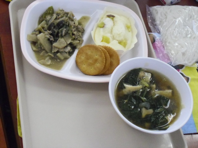 本日給食時、「災害救助用クラッカー」の試食を行いました。これは、保存期限が切れそうなものを新しいものと入れ替えるときに、古いものを消防署からいただいてきたものです。おいしいと評判でした。