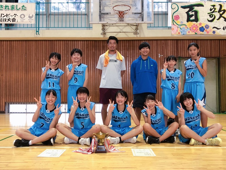 女子バスケットボール部、優勝です。おめでとうございます。県大会に出場します。