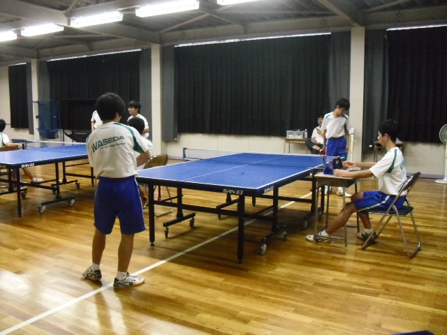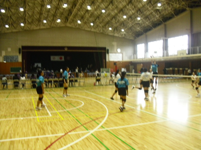 女子バスケット部が数校集まって練習試合をしていました。隣では、女子バレー部、上では男子卓球部が練習していました。