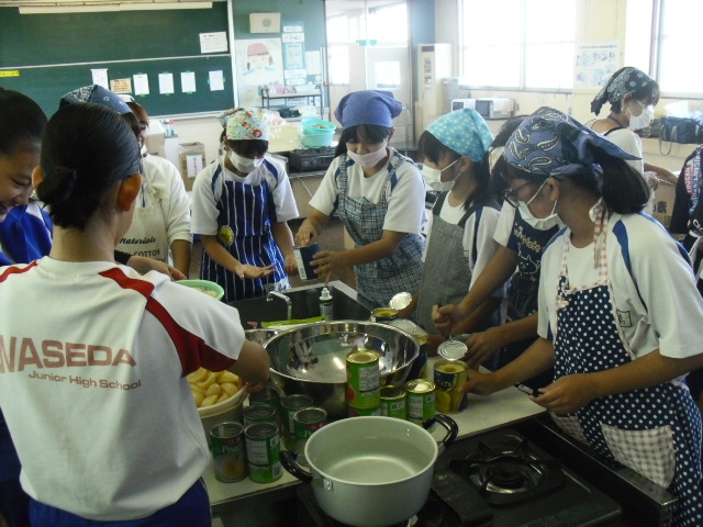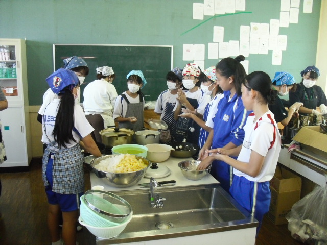 調理室では、生徒も加わって調理していました。