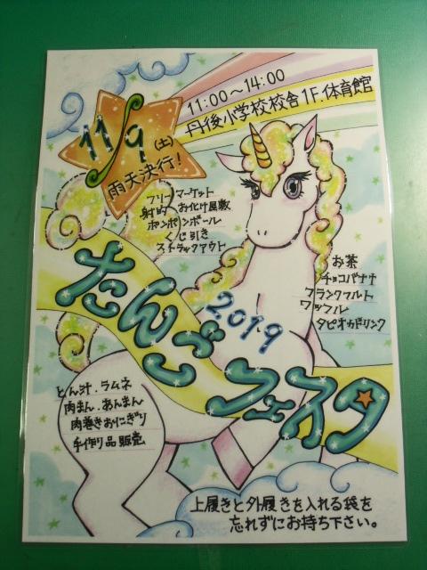 今度は11/9(土)に丹後小学校で「たんごフェスタ」、後谷小学校で「後谷バザー」が行われます。こちらもよろしくお願いします。ポスターです。