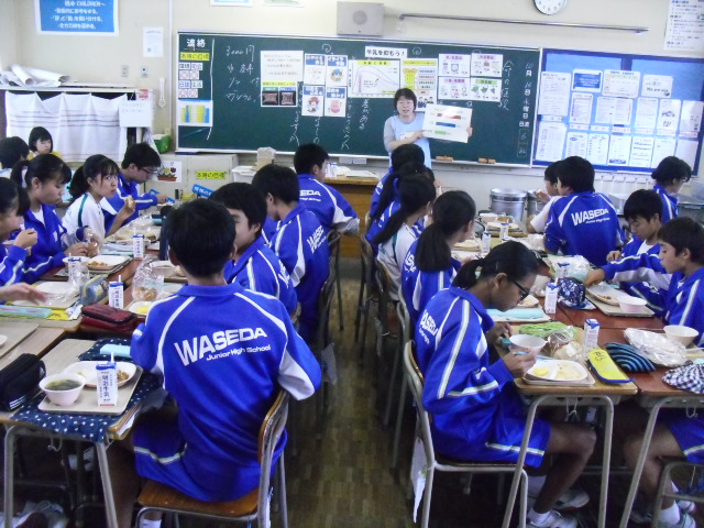 本日より、2年生において栄養教諭による食育指導が給食の時間行われます。