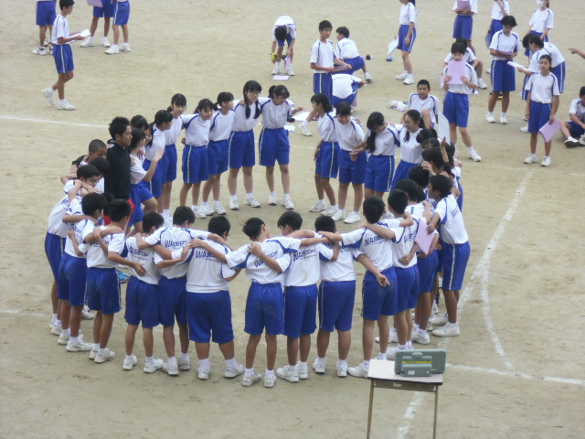持久走最後の授業です。スタートの前に「自己ベストを出すぞ」と円陣を組んで気合を入れていました。