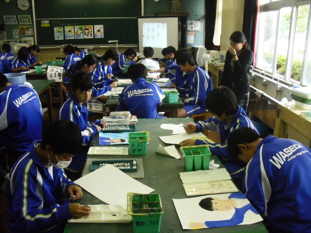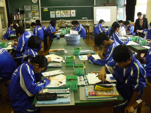 美術です。真剣に絵を描いていました。