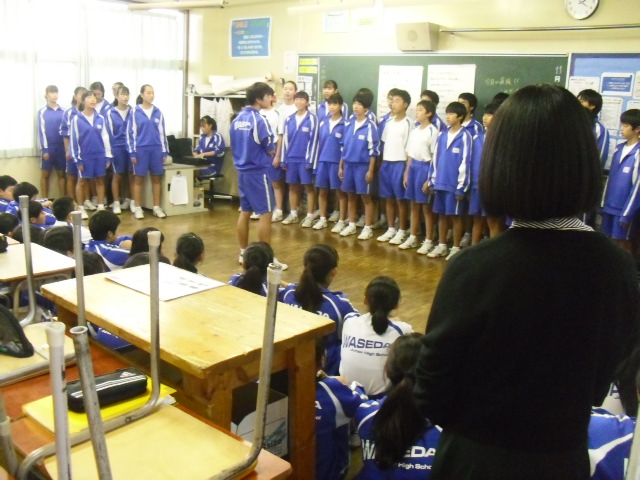 お互いの合唱を聴き合うクラス交流会が行われ、緊張感の中、歌いあげていました。明日の合唱祭では、今までで一番の合唱にしましょう。