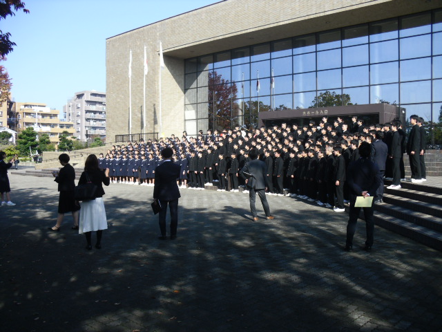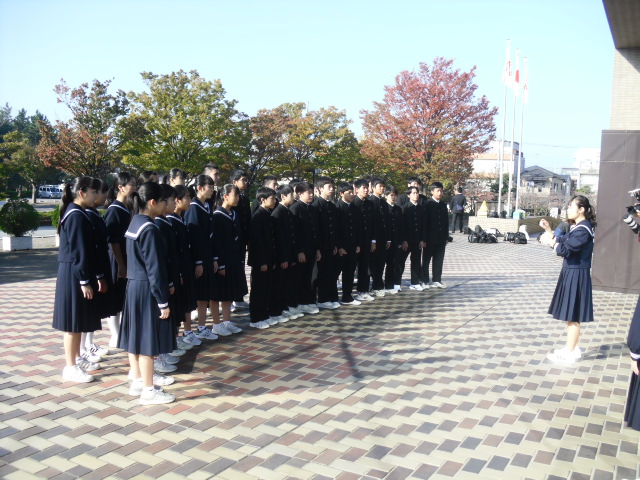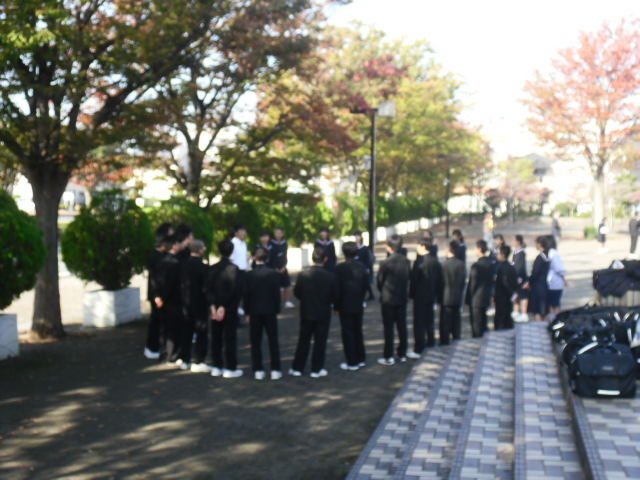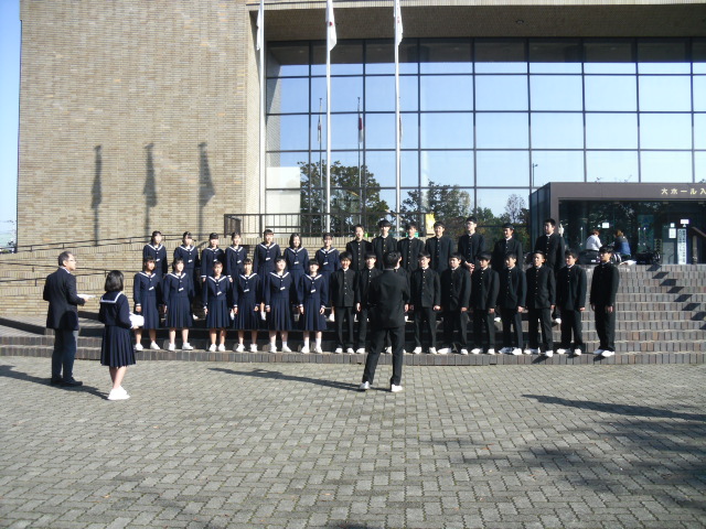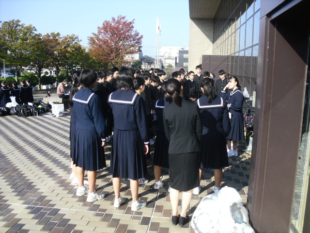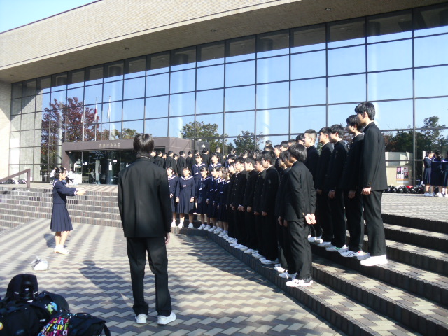 朝、文化会館に入る前のクラス練習、学年練習です。
