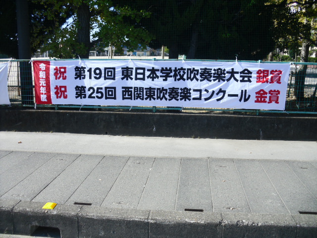 横断幕が出来上がりました。さっそく正門の所に飾りました。