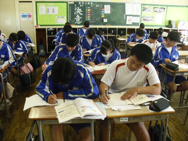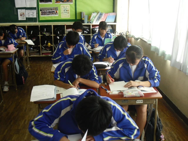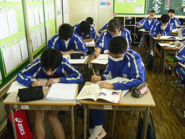本日3校時、3年生の授業です。自習でしたが、さすが3年生、一言もしゃべらず、みんな真剣に課題に取り組んでいました。