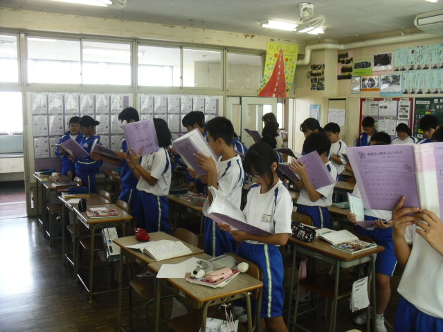 1年生の英語です。「カントリーロード」をみんなで歌っていました。