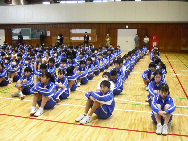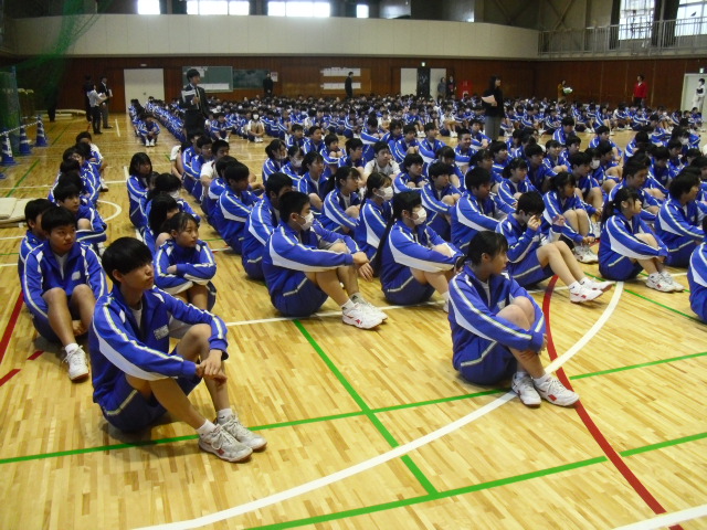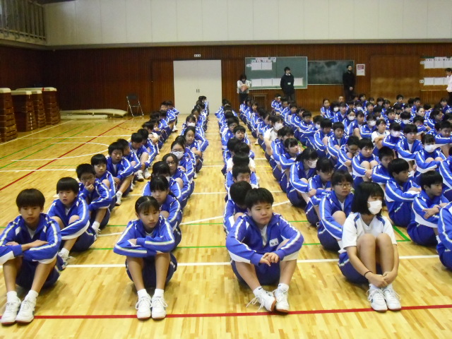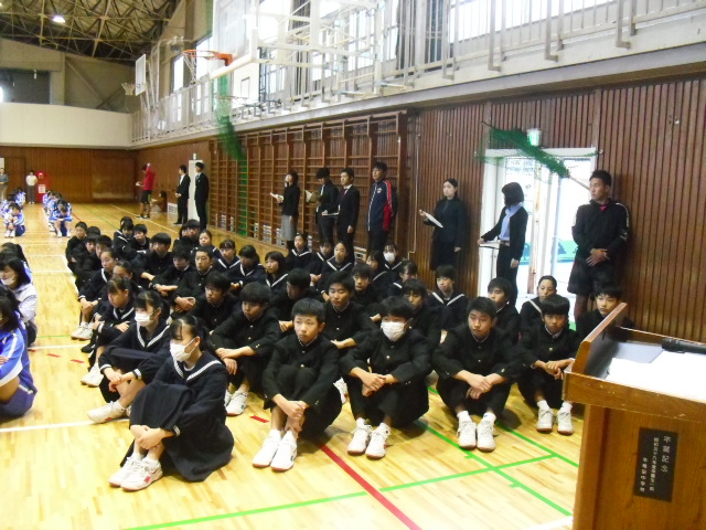 本日1校時、全校集会・生徒会引継ぎ式を行いました。
