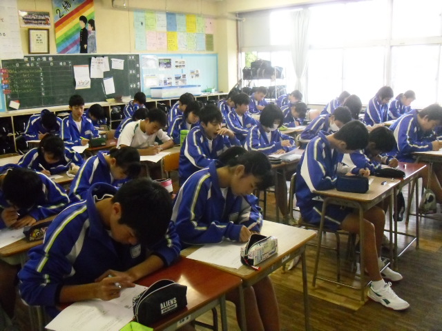 本日朝、2年生は数学の確認テストを行いました。(土)、(日)としっかりと準備できたでしょうか。