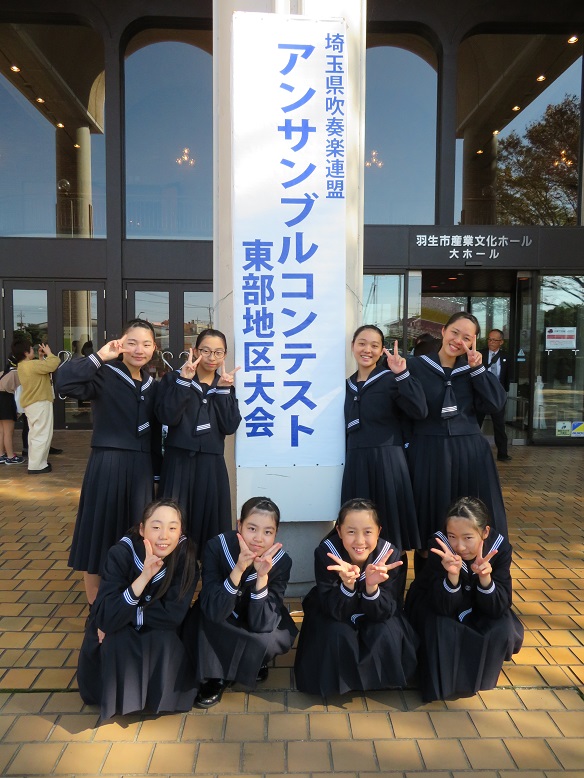 今県大会等行われていますが、昨日11/10(日)に男子バレーボール部が1回戦勝利し11/13(水)に進みます。 昨日11/10(日)に、「アンサンブルコンテスト東部地区大会」が行われ、本校からは、木管打楽器八重奏と金管六重奏が出場しました。金管六重奏は「銀賞」、そして、木管八重奏は見事「金賞」を受賞し県大会出場を果たしました。