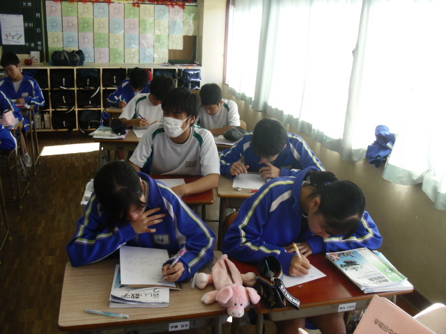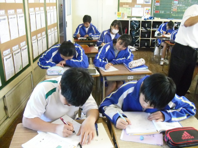 本日2校時、2年生の数学です。課題に取り組んでいます。