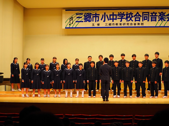本日、文化会館において市内音楽会が行われました。市内小中学校の児童生徒が集まり、合唱などを披露しました。本校からは、合唱祭で最優秀賞を受賞した3年1組が出場しました。