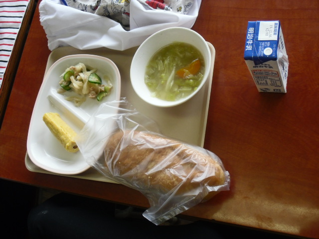 本日の給食です。生徒に人気の揚げパンでした。ただ年に一度の噂が・・・。