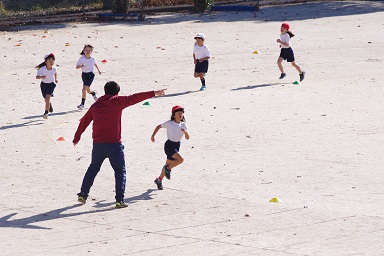 持久走の際、校外にもはしりだしますが、先頭と最後尾。