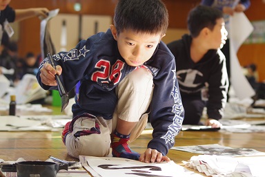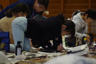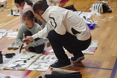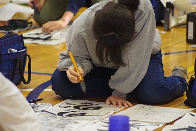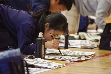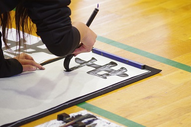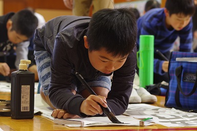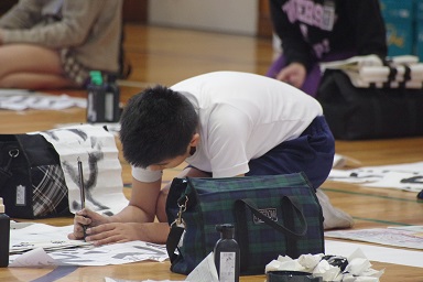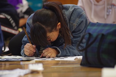 冷たい風が通ることもありましたが、みんな集中して筆を持っていました。
