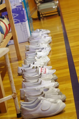 体育館の後ろに上履きがそろえてありました。