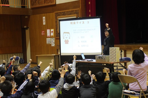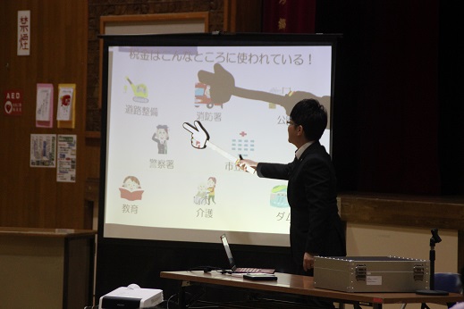 私たちの生活の周りでは、沢山の物やサービスが税金によって成り立っていることをわかりやすく教えてもらえましたね。